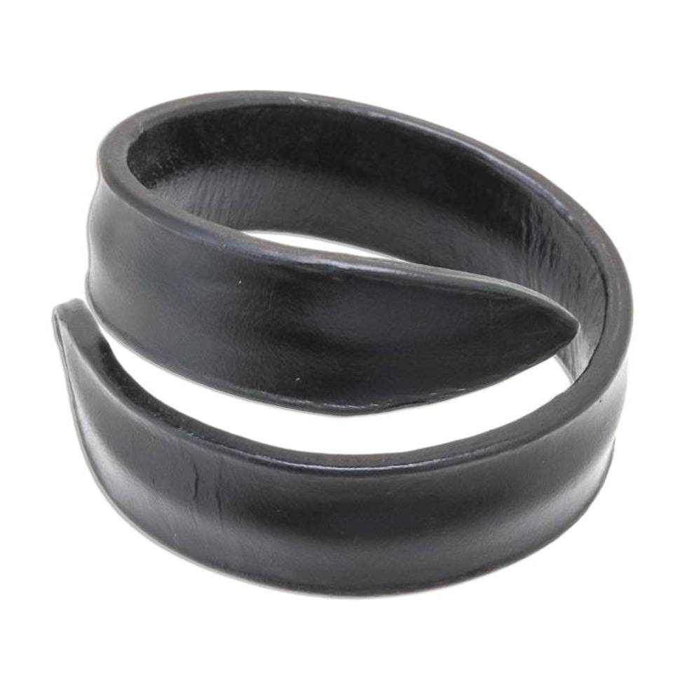 Modern Leather Wrap Bracelet in Black from Thailand 'Simple Caress in Black' Item ID: 2676647415