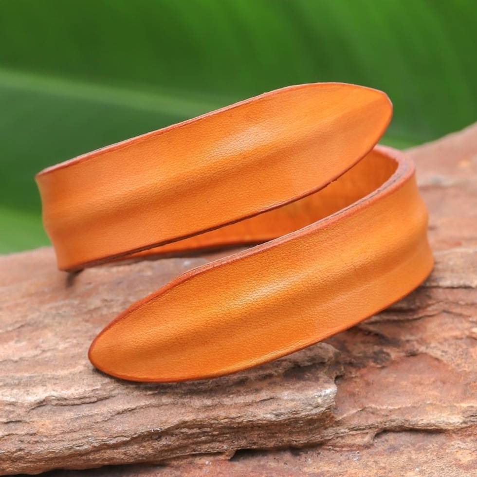 Modern Leather Wrap Bracelet in Orange from Thailand 'Simple Caress in Orange' Item ID: 2671799036