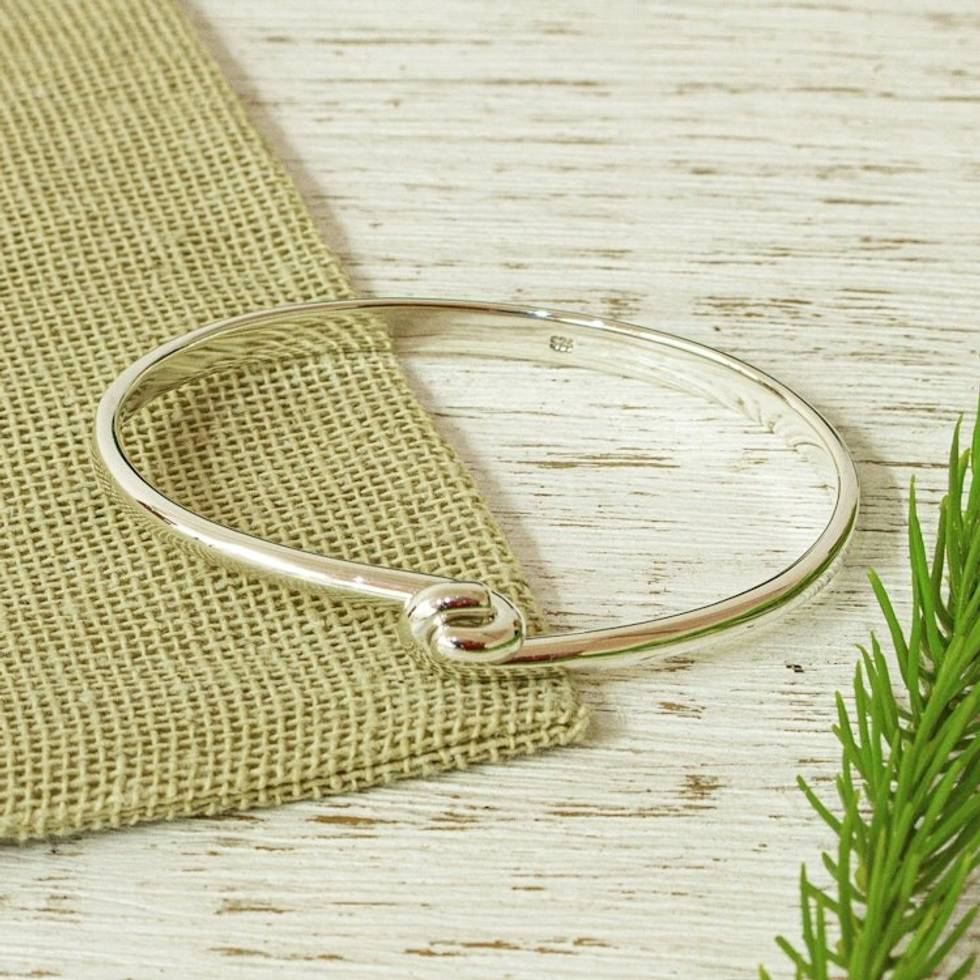 Modern Minimalist Sterling Silver Bangle Bracelet from Taxco 'Clasping Hands' Item ID: 2671808188