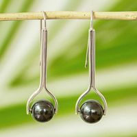 Modern Obsidian Drop Earrings from Mexico 'Obsidian Pendulum' Item ID: 2671639343