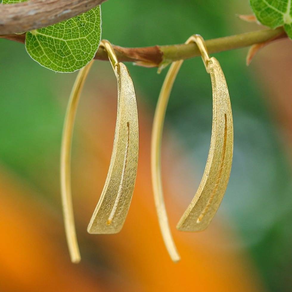 Modern Openwork Brushed Satin 18k Gold-Plated Drop Earrings 'Bright Modern Splendor' Item ID: 2671797044