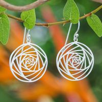 Modern Openwork Floral Sterling Silver Dangle Earrings 'Glamorized Flower' Item ID: 2671796612