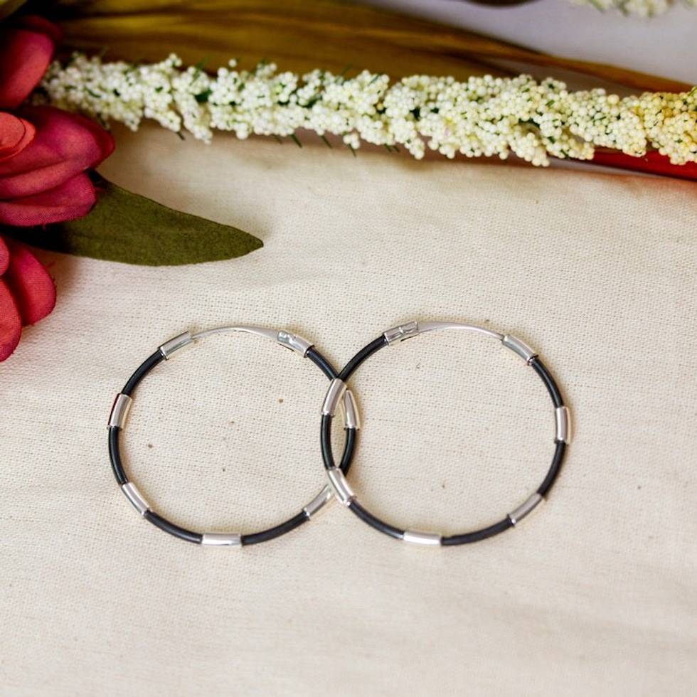 Modern Oxidized Polished Taxco Silver Hoop Earrings 'Stylish Blend' Item ID: 2671798702