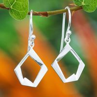 Modern Pentagon-Shaped Sterling Silver Dangle Earrings 'Sublime Pentagon' Item ID: 2671796693