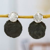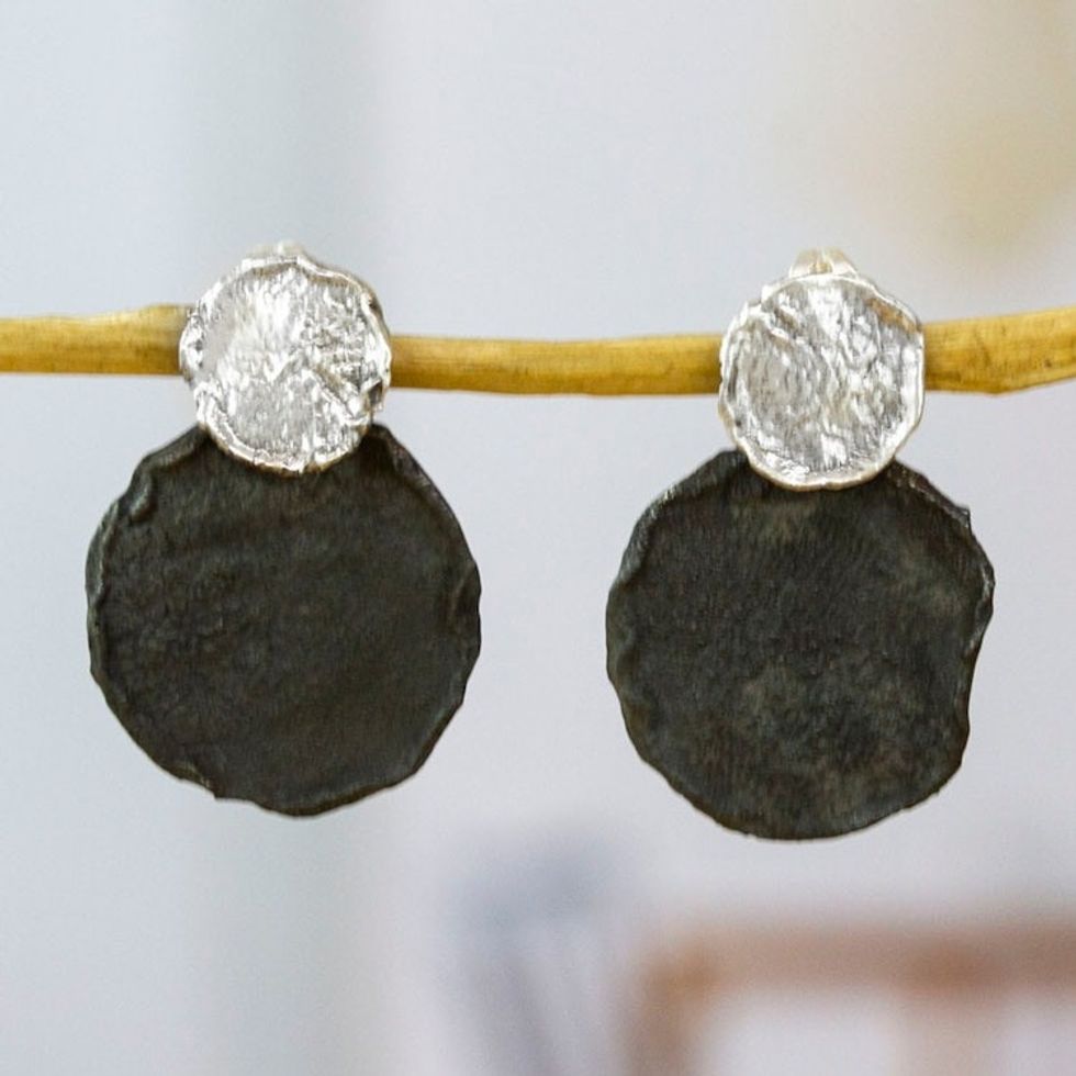 Modern Polished and Oxidized Sterling Silver Dangle Earrings 'Avant-Garde Earth' Item ID: 2671798644