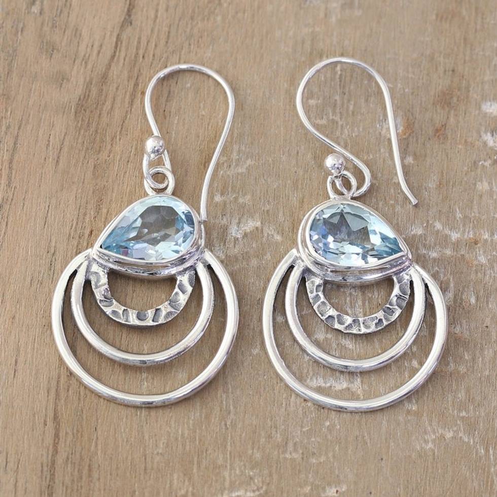 Modern Polished Dangle Earrings with 4-Carat Blue Topaz Gems 'Loyal Orbits' Item ID: 2671786538