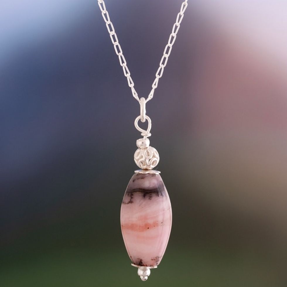 Modern Polished Opal and Sterling Silver Pendant Necklace 'Pink Reflection' Item ID: 2671697991