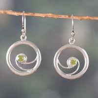 Modern Polished Round Natural Peridot Dangle Earrings 'Gleaming Glory' Item ID: 2671782083