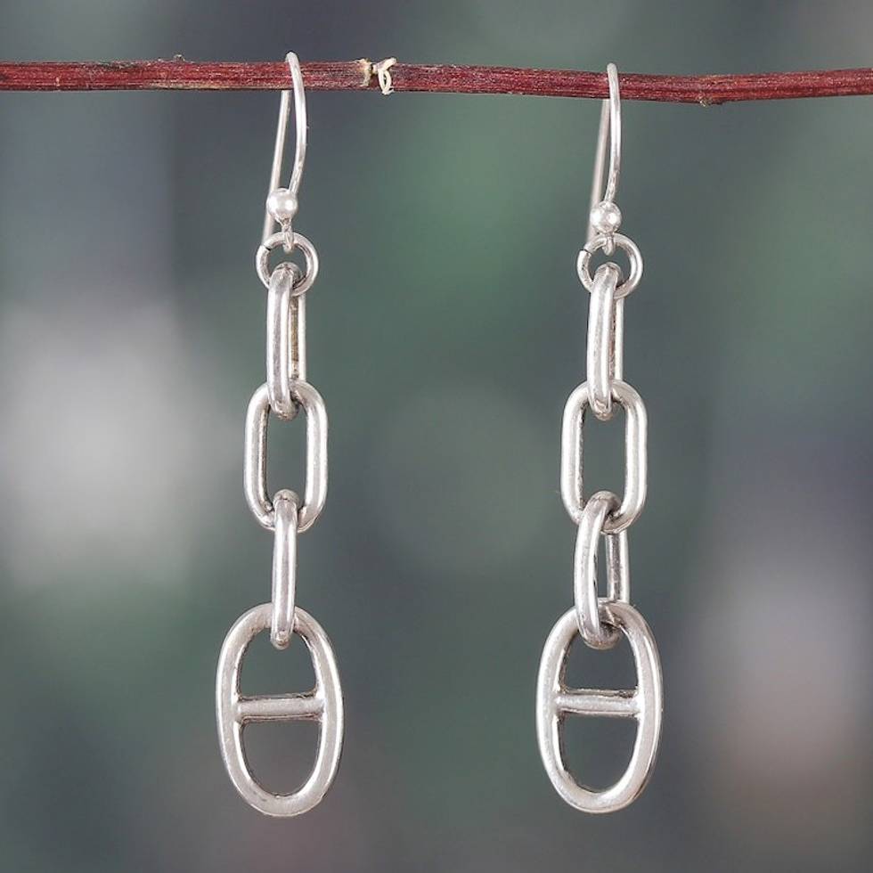 Modern Polished Sterling Silver Link-Shaped Dangle Earrings 'Contemporary Links' Item ID: 2671625447