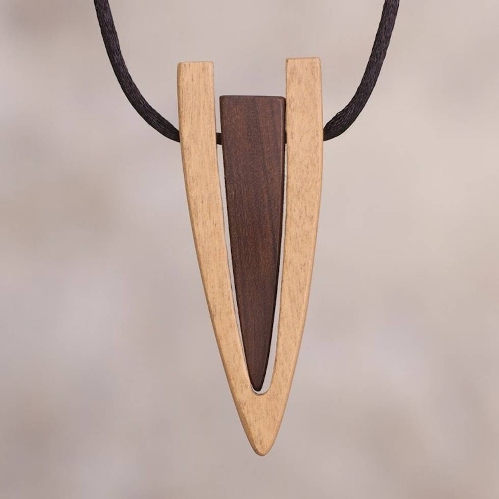 Modern Reclaimed Ipe and Oreja de Leon Wood Pendant Necklace 'Modern Arrowhead' Item ID: 2671820102