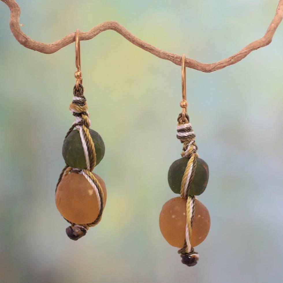 Modern Recycled Glass Dangle Earrings 'Summer Fields' Item ID: 2671807223