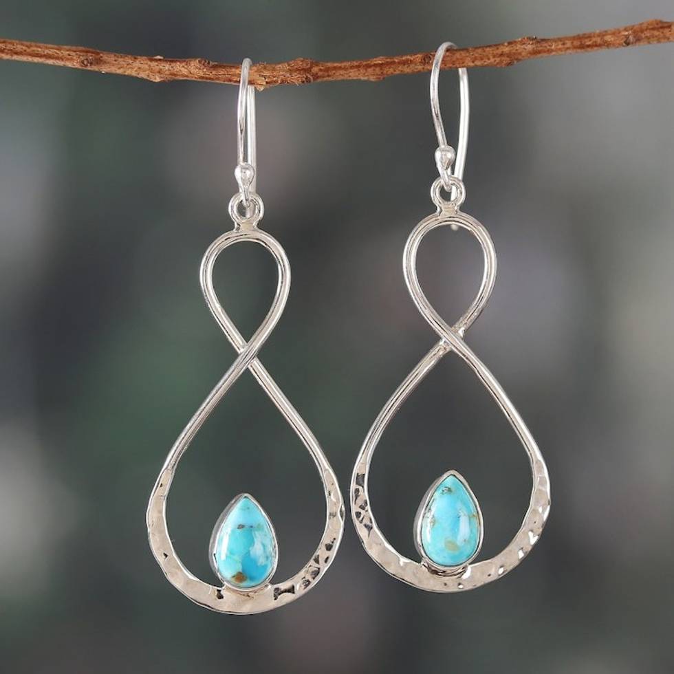 Modern Semi-Abstract Reconstituted Turquoise Dangle Earrings 'Eternal Breeze' Item ID: 2671781497