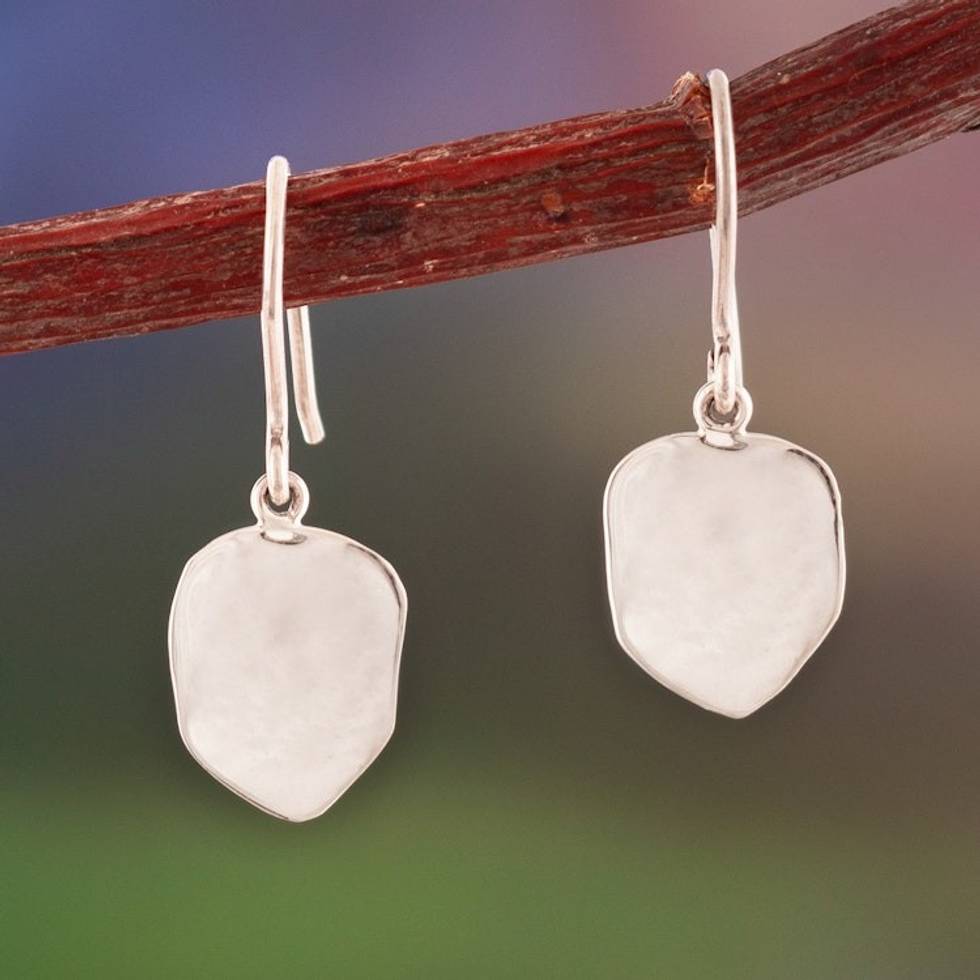 Modern Silver Dangle Earrings with Abstract Leaf Design 'Silk Leaf' Item ID: 2671698008