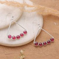 Modern Silver Dangle Earrings with Garnet Cluster Accents 'Fiery Clusters' Item ID: 2671781248