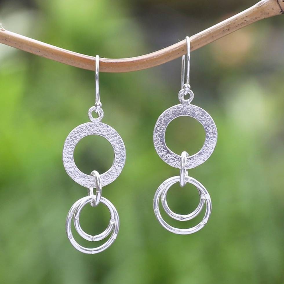 Modern Silver Dangle Earrings with Interlocking Rings 'Stellar Rings' Item ID: 2671763125