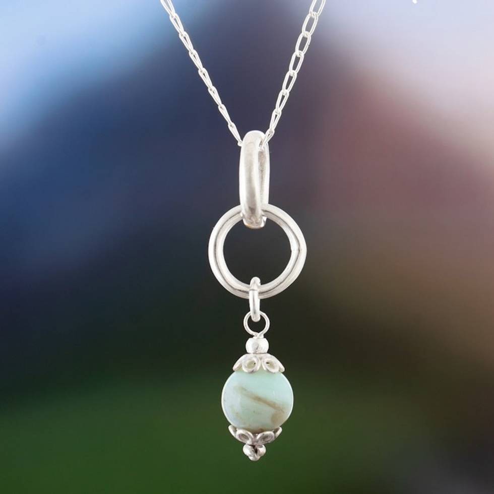 Modern Silver Pendant Necklace with Andean Opal Stone 'Heart of the Andes' Item ID: 2671698098