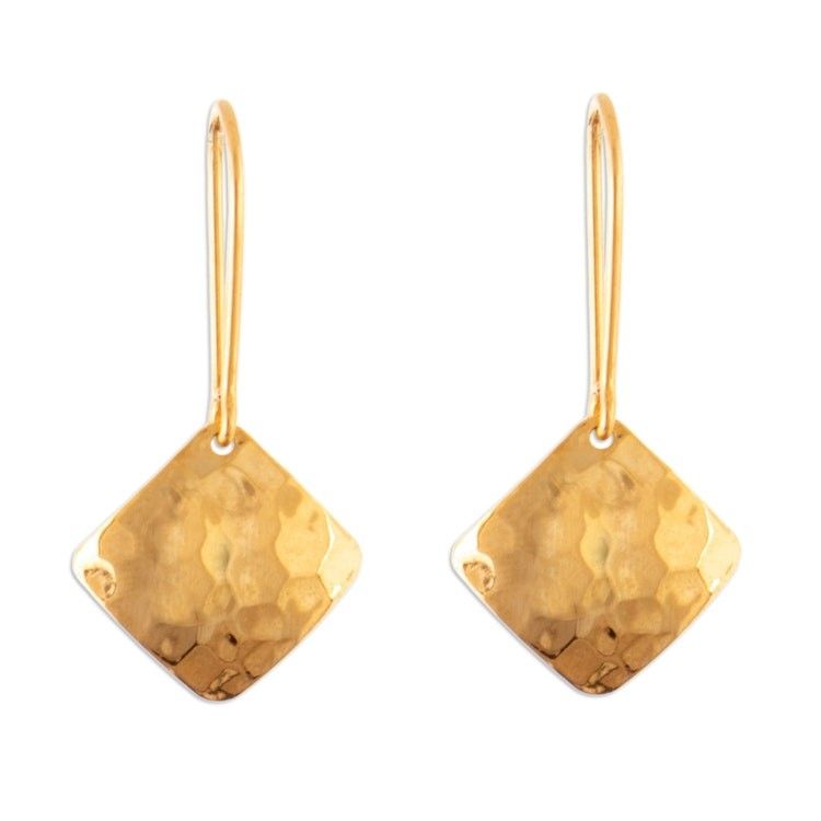 Modern Square 18k Gold-Plated Dangle Earrings from Peru 'Hammered Gold' Item ID: 2671402093