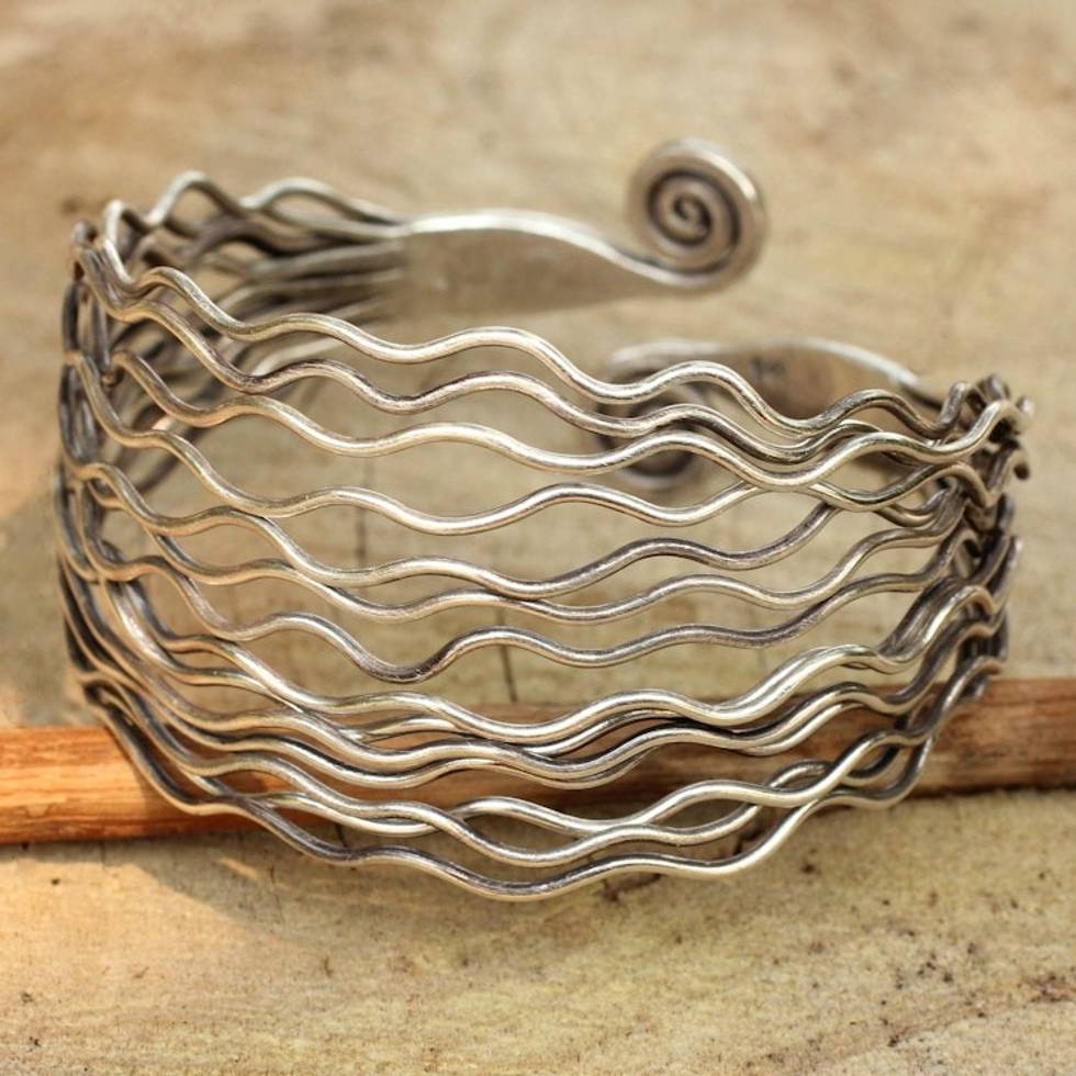 Modern Sterling Cuff from Thailand 'Ocean Currents' Item ID: 2669927562