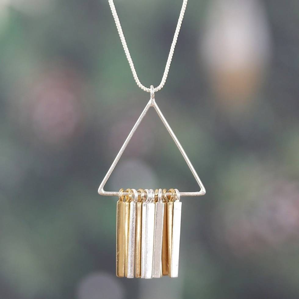 Modern Sterling Silver and Brass Waterfall Pendant Necklace 'Triangular Choices' Item ID: 2671787358