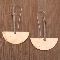 Modern Sterling Silver and Copper Dangle Earrings from Bali 'Half-Circle Modernity' Item ID: 2671820803
