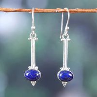 Modern Sterling Silver and Lapis Lazuli Dangle Earrings 'Royal Pendulum' Item ID: 2671786932