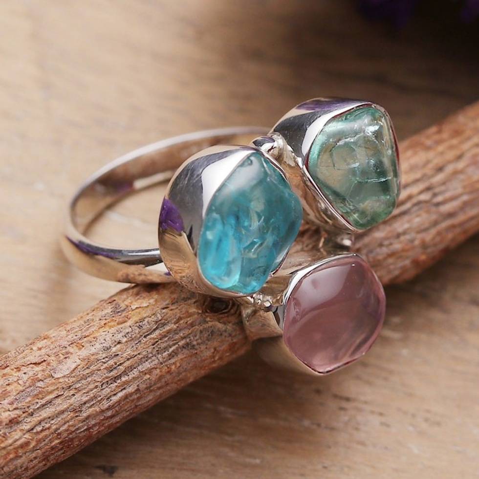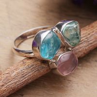 Modern Sterling Silver Apatite and Rose Quartz Cocktail Ring 'Spectacular Trio' Item ID: 2671667368