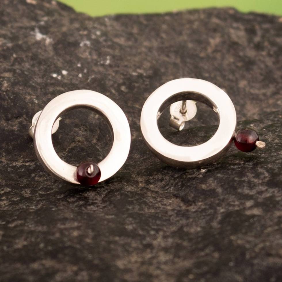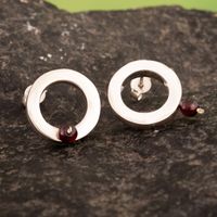 Modern Sterling Silver Button Earrings with Garnet Beads 'Endless Passion' Item ID: 2671698126