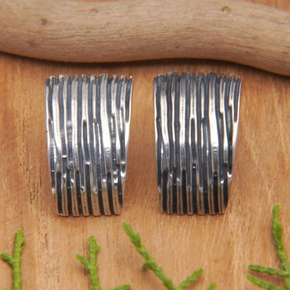 Modern Sterling Silver Button Earrings with Oxidized Finish 'Magical Dream' Item ID: 2671764855