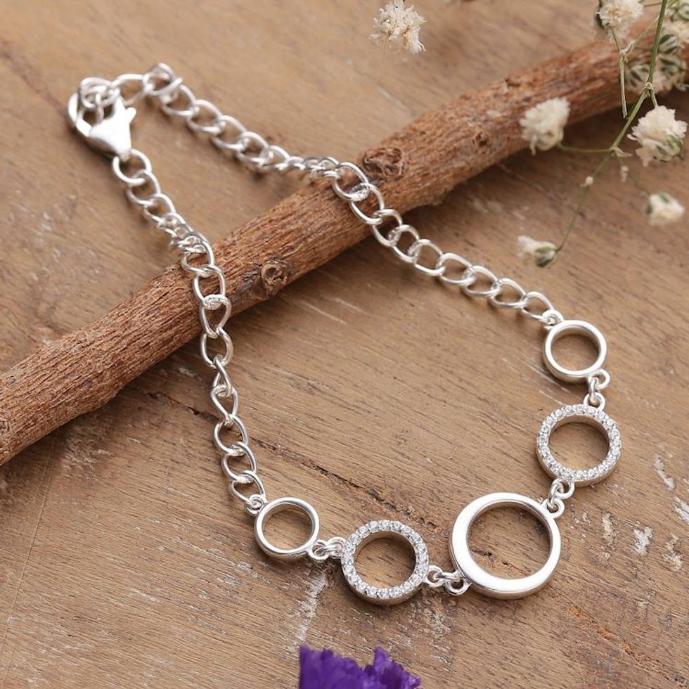Modern Sterling Silver Cubic Zirconia Pendant Bracelet 'Ethereal Cycles' Item ID: 2671782459