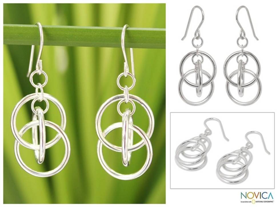 Modern Sterling Silver Dangle Earrings 'Circle Game' Item ID: 2671802840