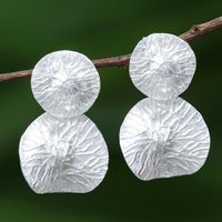 Modern Sterling Silver Dangle Earrings from Thailand 'Gleaming Pads' Item ID: 2671799407