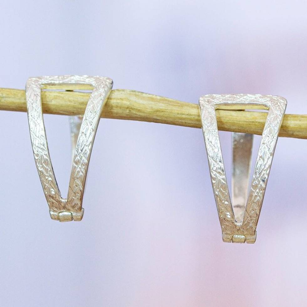 Modern Sterling Silver Hoop Earrings with Textured Accents 'Pyramids of Tomorrow' Item ID: 2671807757