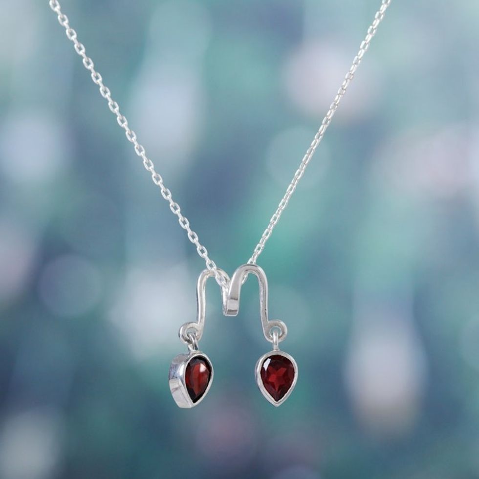 Modern Sterling Silver Pendant Necklace with Garnet Stone 'Crimson Dreams' Item ID: 2671786729