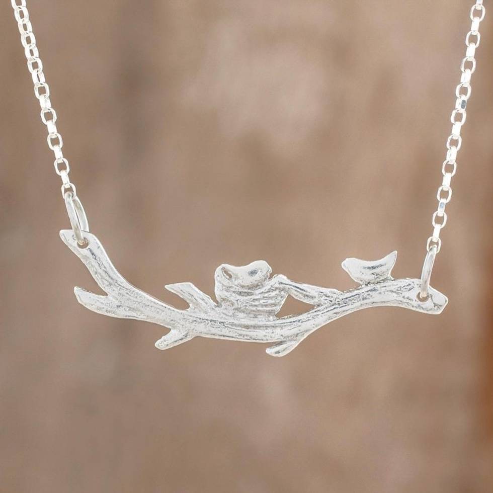 Modern Sterling Silver Tree Pendant Necklace from Costa Rica 'Nest of Love' Item ID: 2669923718