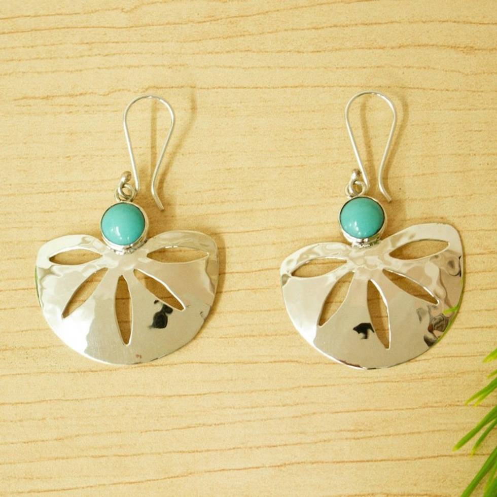 Modern Taxco Silver and Natural Turquoise Earrings 'Sleek Serenity' Item ID: 2669932249