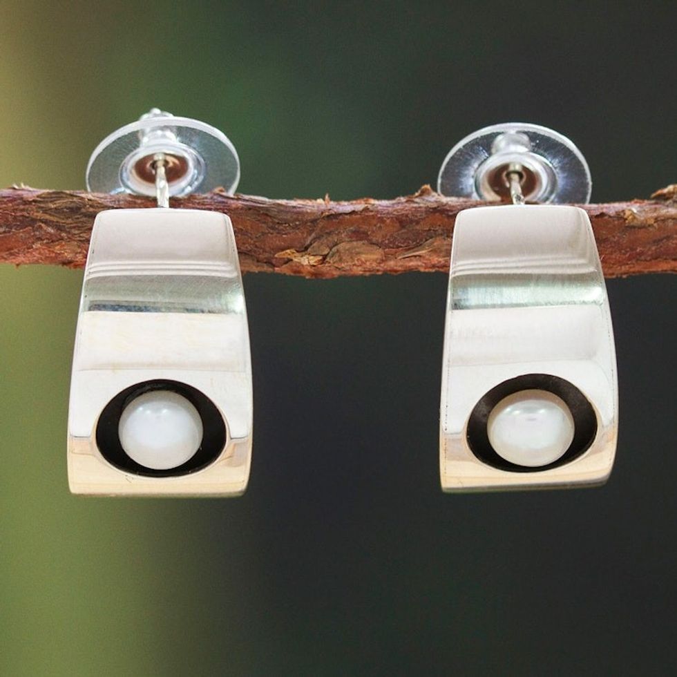 Modern Taxco Sterling Silver Cultured Pearl Drop Earrings 'Classic and Modern' Item ID: 2671807821