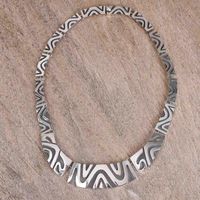 Modern Taxco Sterling Silver Link Necklace from Mexico 'Wavy Labyrinth' Item ID: 2671808871