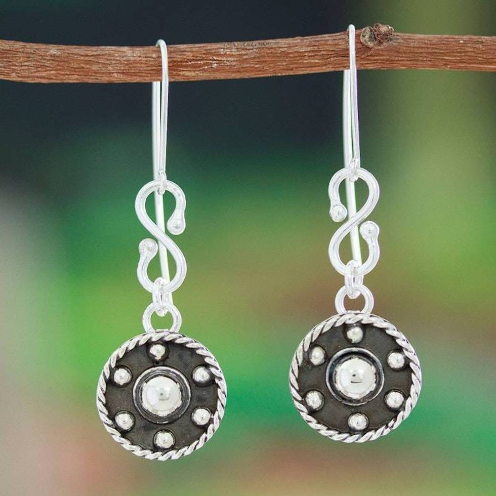 Modern Taxco Sterling Silver Oxidized Dangle Earrings 'Wheels of Style' Item ID: 2676646990