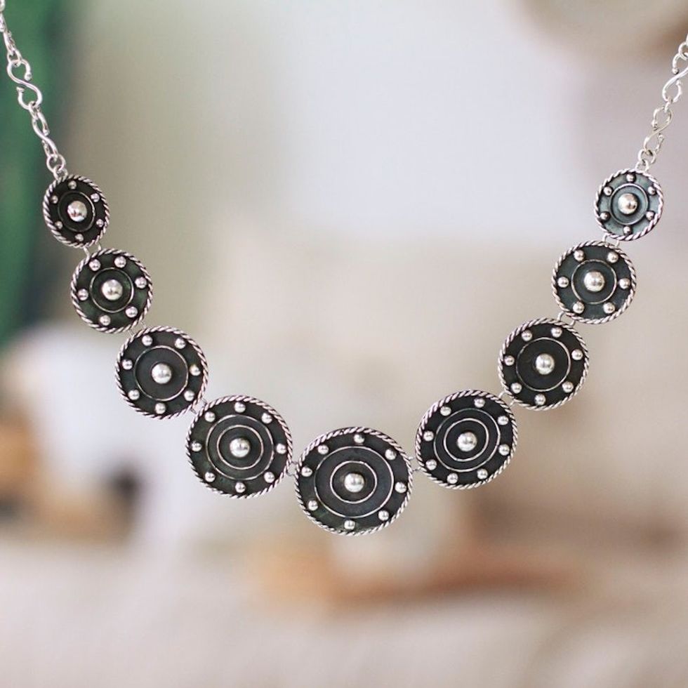 Modern Taxco Sterling Silver Oxidized Link Necklace 'Wheels of Style' Item ID: 2671807456