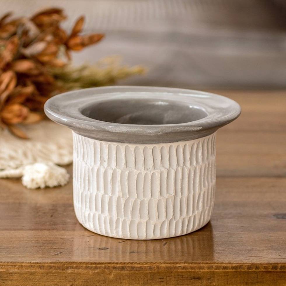 Modern Textured Ceramic Vase Hand-Painted in Guatemala 'Festival of Flowers in Grey' Item ID: 2671768964