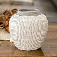 Modern Textured Ceramic Vase with Hand-Painted Grey Accents 'Floral Universe in Grey' Item ID: 2671769133