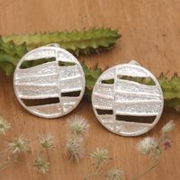 Modern Textured Circular Sterling Silver Button Earrings 'Magical Circles' Item ID: 2671764925