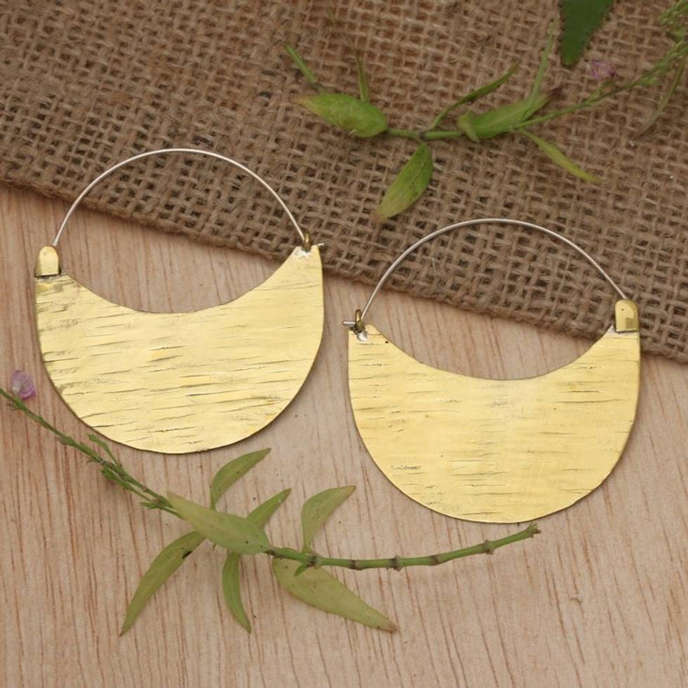 Modern Textured Gold-Plated Crescent-Shaped Hoop Earrings 'Textured Crescent' Item ID: 2671765529