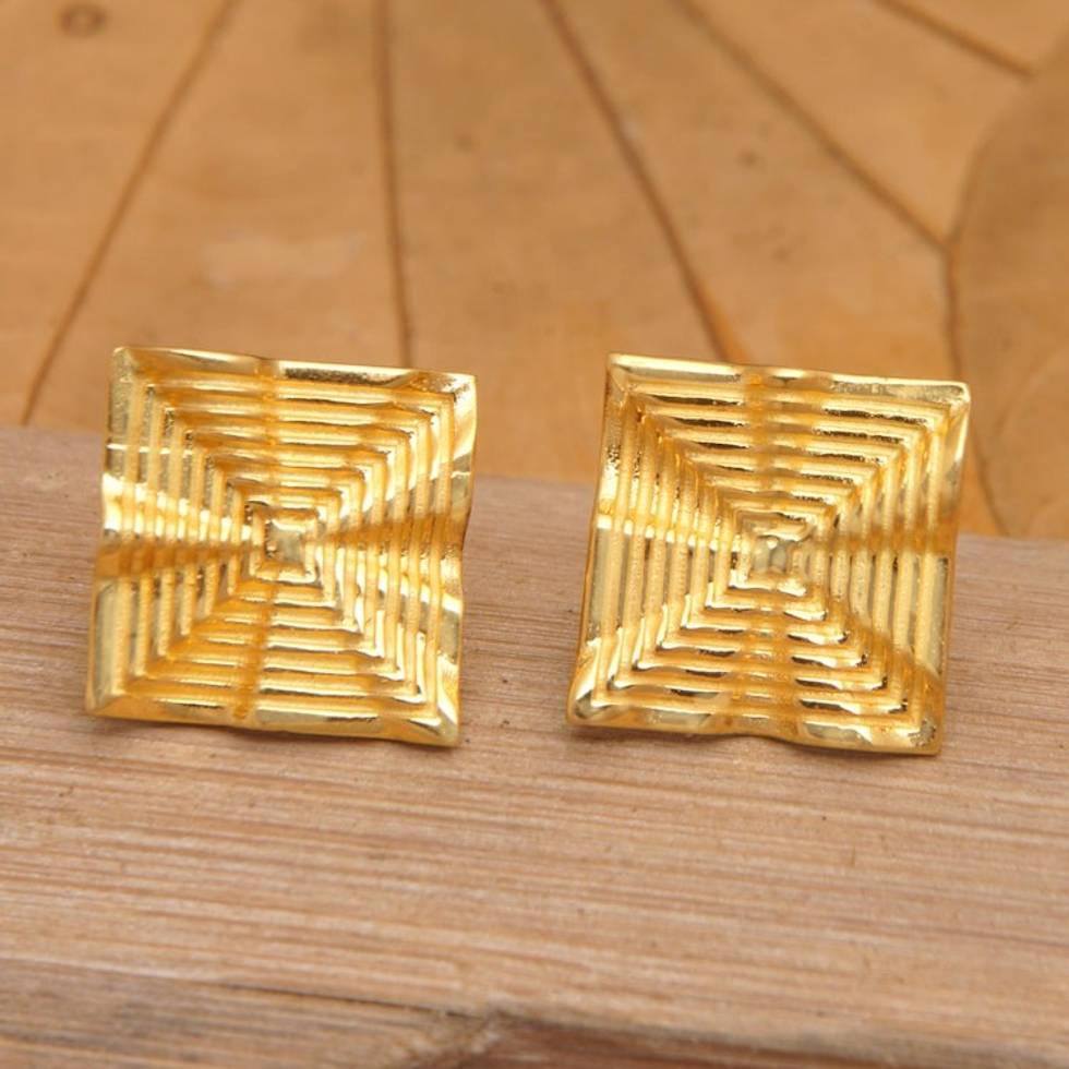 Modern Textured Square 18k Gold-Plated Button Earrings 'Knotted Squares' Item ID: 2671763966
