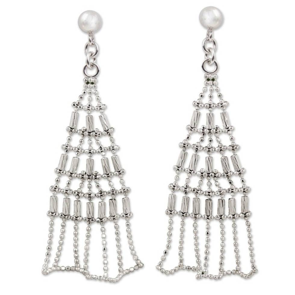 Modern Thai Sterling Silver Dangle Earrings Crafted by Hand 'Holiday Trees' Item ID: 2671802128