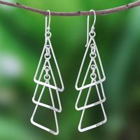 Modern Triangular Sterling Silver Dangle Earrings 'Triangle Triplets' Item ID: 2671640996