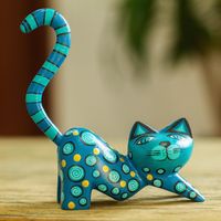 Modern Turquoise Cat Alebrije Sculpture 'Turquoise Cat' Item ID: 2671640100