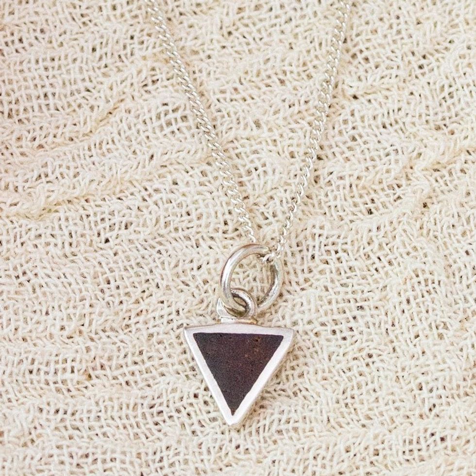 Modern Wood and Sterling Silver Triangle Pendant Necklace 'Balanced Forest' Item ID: 2671798684