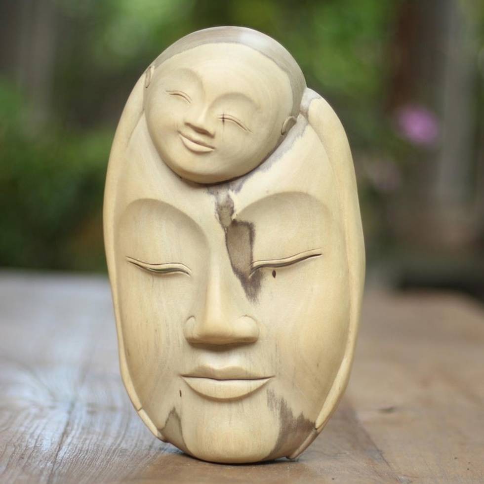 Modern Wood Mask from Indonesia 'Mother Love' Item ID: 2671700152