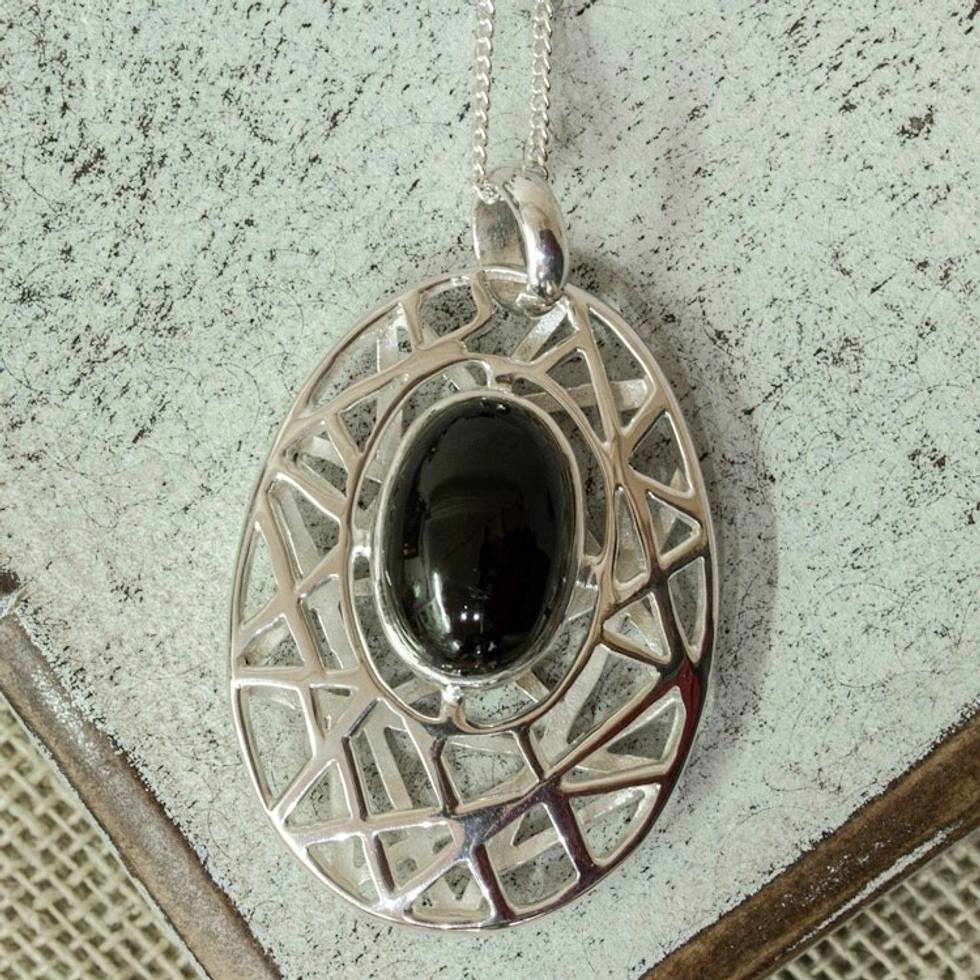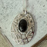 Modernist Silver and Obsidian Pendant Necklace from Mexico 'Lunar Obsidian' Item ID: 2671808000